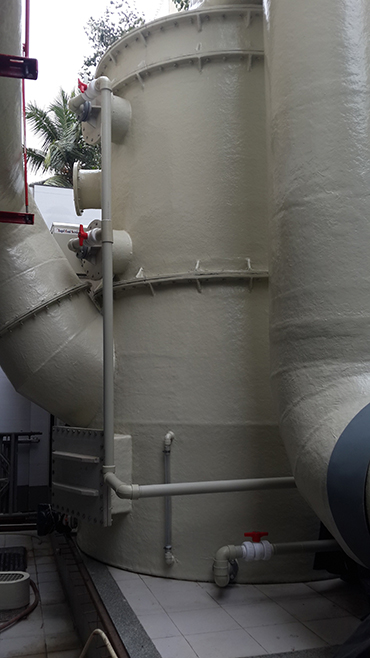 RK Plastics manufactures an extensive line of scrubber in both the horizontal and vertical arrangements. Vertical and horizontal scrubber are designed with many exclusive scrubber friendly features specifically for the clients’ convenience-custom designed for space requirements and chemical loading. High efficiency media – mist eliminator – removable spare hearers (union connection) through open able access doors – recirculation sumps with vertical mechanical pumps and level controls – gpm flow meter etc. scrubber are constructed of PVC/PPGL/PP and include on externally lining of premium grade, Vinylester or ISO resin for maximum corrosion resistance.